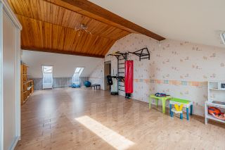 На третьем этаже 3 комнаты , из которых одна сделана под игровую и спортивный зал, две жилые комнаты, санузел и большая библиотека.