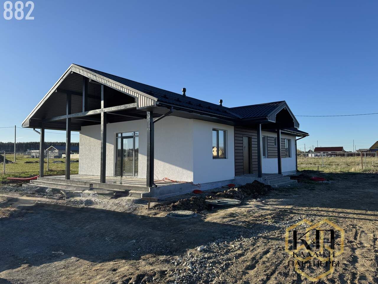 - По всей территории идет дренаж и водоотведение ОТДЕЛКА ДОМА - WНIТЕ ВОХ (все готов для поклейки обоев и укладки ламината)Основные характеристики:• Площадь дома 124 кв.м.• Площадь участка 10 соток .