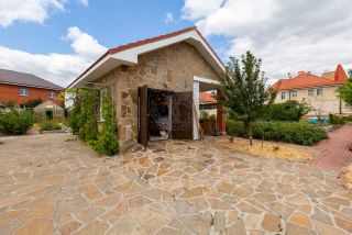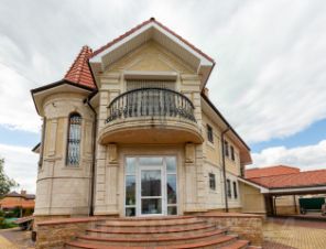 Расскажу о самом коттедже: дом построен из кирпича и обшит камнем.