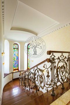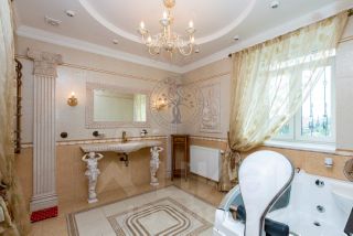 В цокольном этаже имеются: котельная с двумя котлами, которые обеспечивают бесперебойную работу теплых полов во всём имении, резервное отопление от электричества, зал для занятия танцами/аэробикой/гимнастикой, а также складские помещения для хранения продуктов.