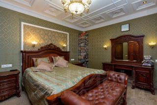 На втором этаже: рабочий кабинет с выходом на балкон, детская комната, спальная комната с выходом на просторную террасу, общая ванная комната, а также хозяйская мастер-спальня с гардеробом и отдельной ванной комнатой.