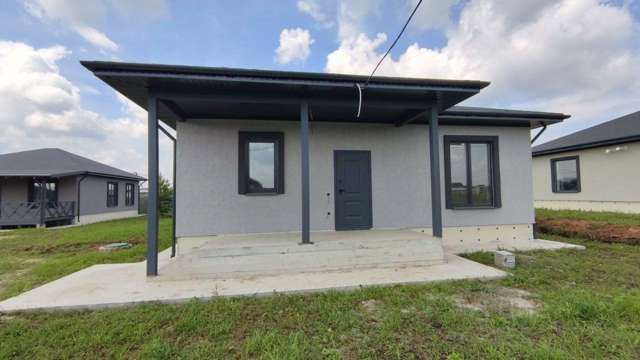 Фундамент утепленный - сваи (глубина 2 метра) с шагом 2,5 метра, ростверк 60см, арматура 12мм стальная, отмостка 1 метр, монолитная плита армированная, ж/б армопояс, бетонные перемычки над проемами, механическая штукатурка стен, полусухая стяжка полов.