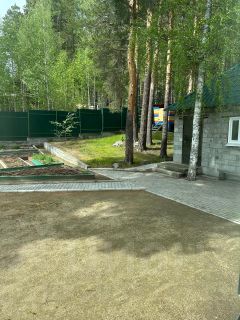 Имеется заезд для двух автомобилей, на участке расположена баня, 2 теплицы, вековые сосны, смородина, крыжовник, клубника, яблони.