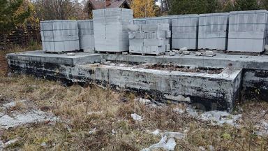 На участке фундамент 13х14, ленточный, засыпан щебнем и залит монолитом (рассчитан на большой дом).