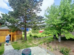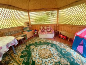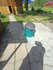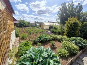 К дому пристроен гараж, место для парковки отсыпано щебнем.