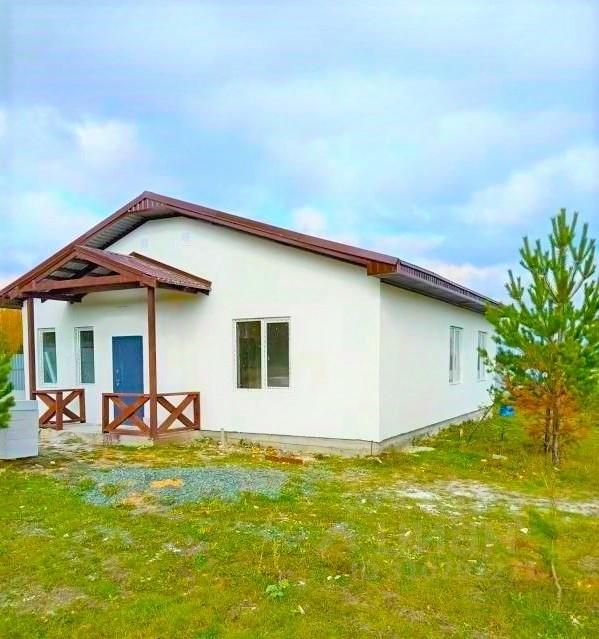 Большая гостиная с кухонной зоной панорамными окнами и выходом во двор на террасу с крышей. 3 просторных спальных комнаты, ванная комната, котельная, прихожая и 2 коридора.
