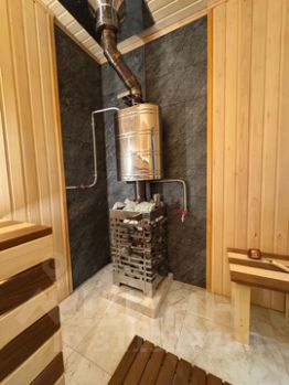 Жилая комната, санузел, сауна, котельная расположены также на первом этаже.