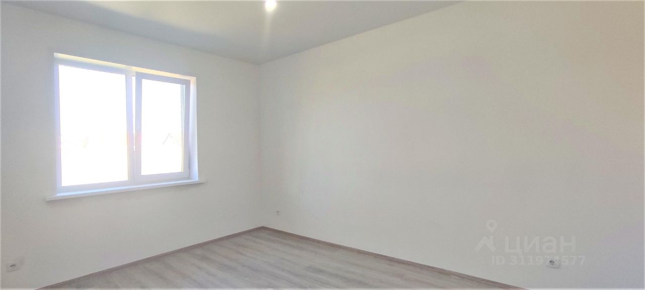 Большая гостиная с кухонной зоной панорамными окнами и выходом во двор на террасу с крышей. 3 просторных спальных комнаты, ванная комната, котельная, прихожая и 2 коридора.