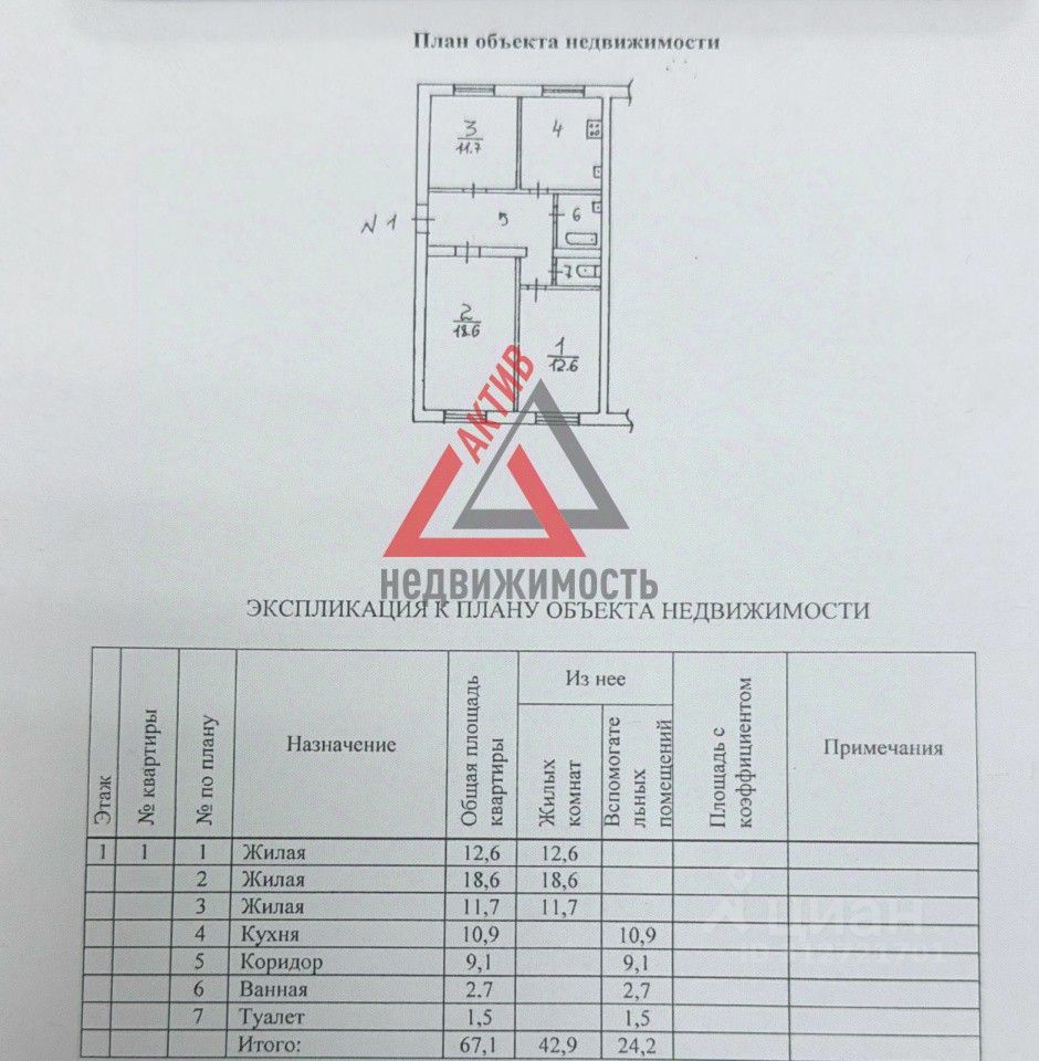 * Комнаты: Три раздельные площадью 12.6 м2, 18.6 м2 и 11.7 м2 + кухня 10.9 м2