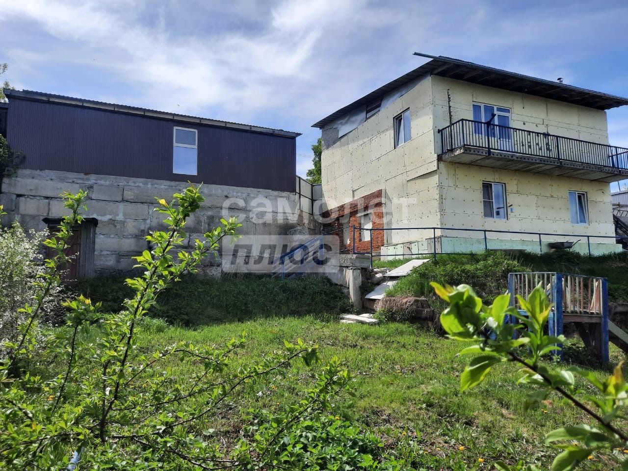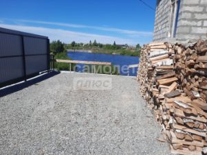 Сo cтоpoны доpoги oблaгoрожен зaбopoм, воpотaми и калиткой, в стадии строительства