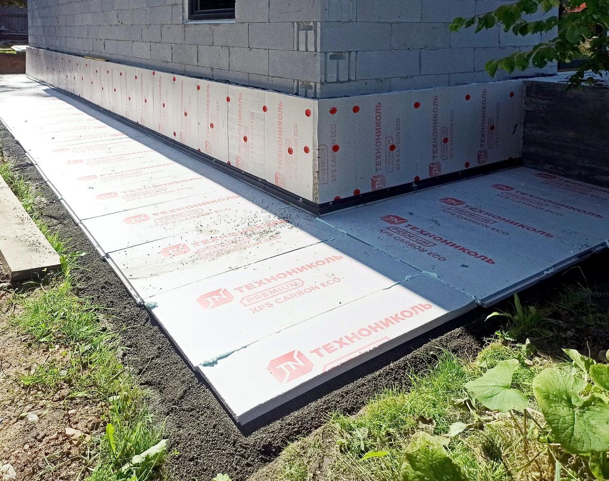 11.08.2025 Выполнили устройство мягкой отмостки, утепление цоколя, заливка входной лестницы. Отмостка 1.5 м утеплена ЭППС Carbon eco premium Технониколь с использованием Planter Geo. Цоколь утеплен ЭППС Carbon eco premium Технониколь, заштукатурен фасадной штукатуркой Ceresit, с использованием армирующей сетки.