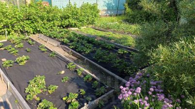 Несколько грядок с садовой клубникой (разного возраста, в том числе молодые), за ними следили и постоянно обновляли.