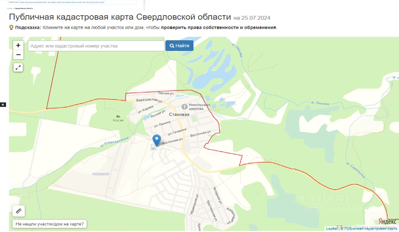 Участок расположен в конце ул. Восточная. От участка 350м до остановки общественного транспорта и магазина Флагман. До г. Березовский 12 км, до г. Екатеринбург 25 км. До п. Становая новая асфальтированная дорога, поселок расположен в окружении соснового леса, чистая питьевая вода и отличная экология, прекрасные видовые характеристики.