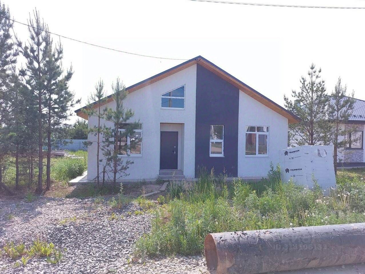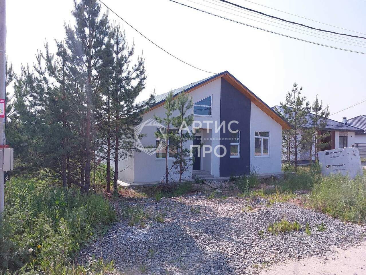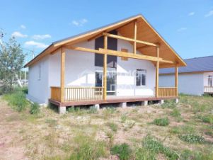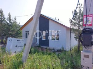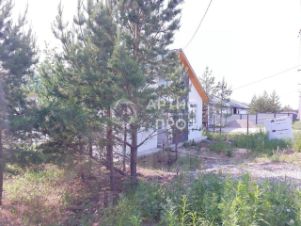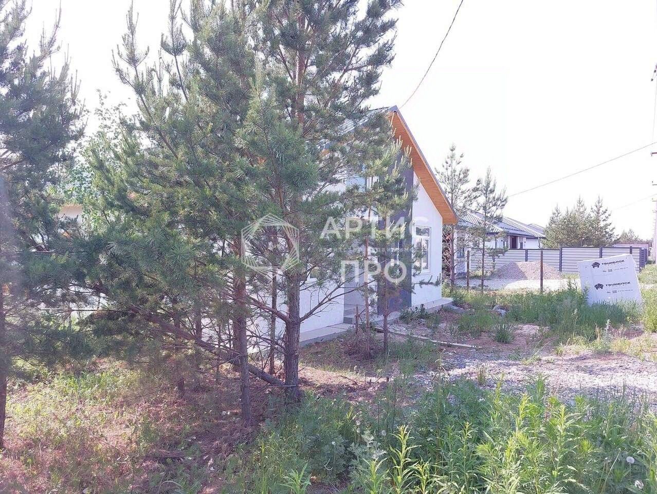 Дом расположен на участке площадью 6 сот, на территории которого растут молодые сосны.