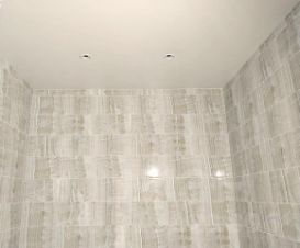 Обеспечено освещение и установлены натяжные матовые потолки.