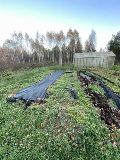 Участок отмежеван, ровный, частично разработан, 2 года не было посадок, только скашивание травы. На участке - теплица 3х6 м на фундаменте (требуется ремонт поликарбоната). Других построек нет.