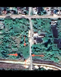 Вдоль участка электрические столбы, газ на соседней улице, рядом есть ручей.