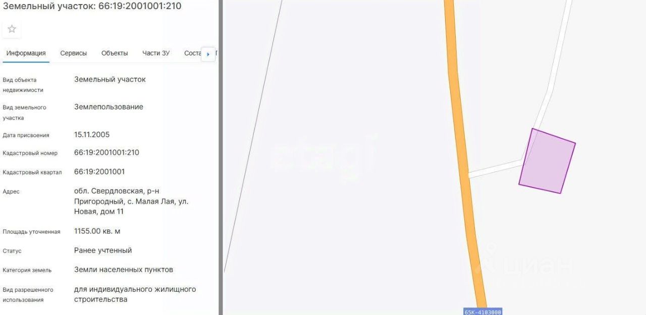 Земельный участок площадью 11,55 соток расположен в селе Малая Лая, в 300 метрах севернее кафе "Милано", в 30 км от Нижнего Тагила. Участок находится вдоль региональной автодороги Екатеринбург — Нижний Тагил — Серов, что обеспечивает удобный подъезд и хорошую транспортную доступность. Общественный транспорт ходит регулярно, что делает местность привлекательной как для постоянного проживания, так и для коммерческого использования. Земля относится к категории населённых пунктов и разрешена для ведения личного подсобного хозяйства, но также возможен перевод под строительство коммерческого объекта — согласование с администрацией уже проведено.