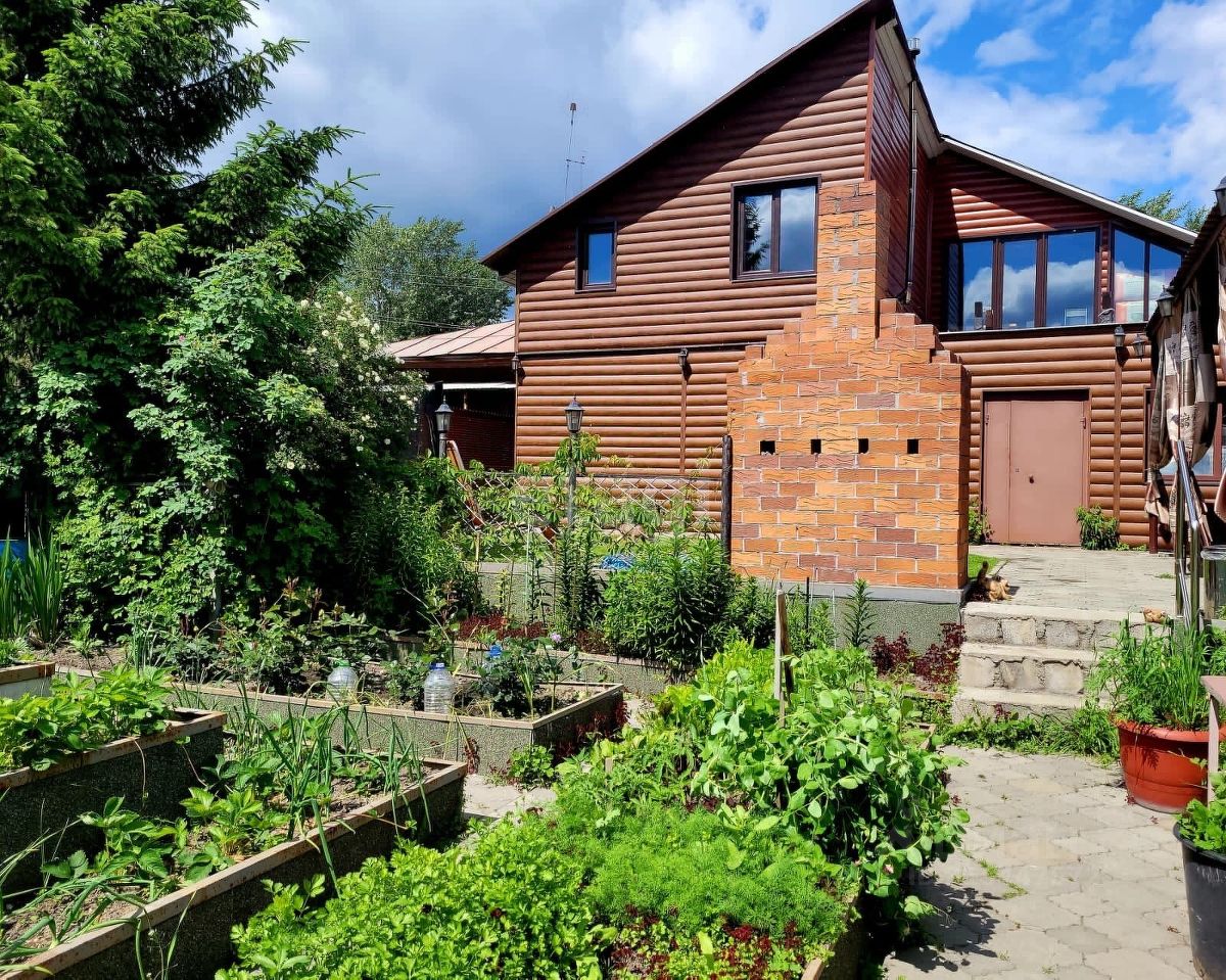 Дом выполнен из комбинированного материала, шлакоблок и брус, имеет площадь 341 метр квадратный, дом газифицирован, утеплен, обшит сайдингом.