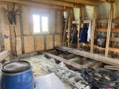 Второй этаж представляет собой подготовленное пространство для дальнейшего строительства — все необходимые материалы для завершения работ уже закуплены, что позволяет новому владельцу быстро и с минимальными затратами завершить обустройство дома по своему вкусу. Участок дает возможность расширения или благоустройства прилегающей территории.