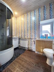 В доме 4 комнаты + кухня + столовая. Санузел совмещенный, душевая кабинка. Окна ПВХ, потолки натяжные, на полу линолеум.