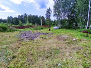 Участок правильной прямоугольной формы, начато строительство забора по периметру. Красивое, живописное место, на соседних участках построены несколько домов.