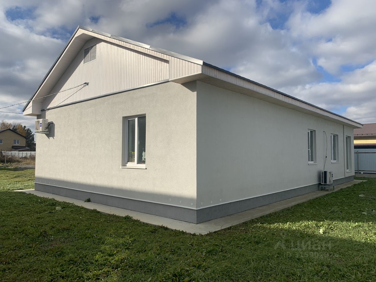 Фундамент - буронабивные сваи около 50шт+ростверк+монолитная плита, армопояс ж/б, стены газоблок с утеплением 110, мягкая кровля с утеплением и отличной шумоизоляцией - дождь не слышно вообще, зимой очень тепло - котел зимой включаем максимум на 40 градусов ночью, днем 30-35, отопление тёплый пол + радиаторы, залита отмостка, проведен интернет(ни разу не было проблем), высокие потолки