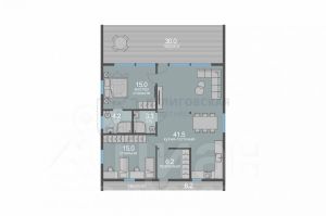 - Две изолированные спальни по 15 м². В одной из спален предусмотрена антресоль — идеальное место для детской игровой или камерного личного пространства