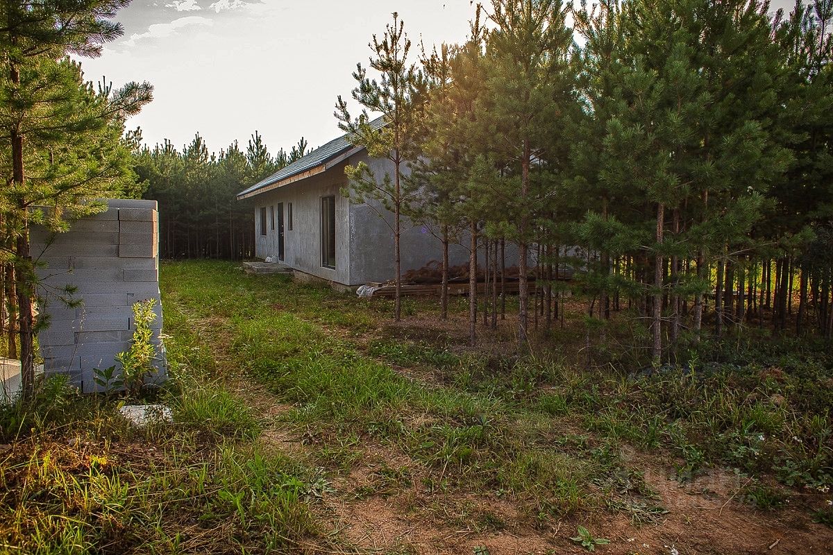 Дом на участке окружен со всех 4 сторон молодыми соснами - собственный лес на участке! Отличный вариант для загородного жилья - грибы под боком, не надо стричь газон или убирать снег, просто приезжай и отдыхай. В любой момент можно убрать лишние сосны под ваши пожелания, когда захотите сделать лужайку с газоном или зону барбекю.