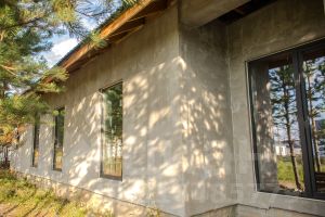 Отделка снаружи: предчистовая - армирующая штукатурка по сетке, подготовлено под нанесение финишной штукатурки. Вы можете выбрать цвет дома самостоятельно.