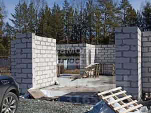 На участке залит плитный фундамент и возведены стены дома на 180 кв. м.