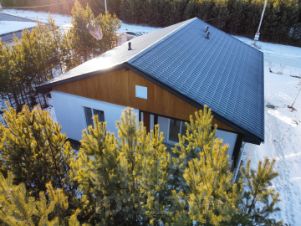 Внутри дома создана настоящая атмосфера уюта. Три спальни обеспечат комфортный отдых для всей семьи. Главное пространство просторная кухня-гостиная с панорамным окном, откуда открывается великолепный вид на лес, растущий прямо у вас на участке, она станет идеальным местом для встреч с друзьями и семейных ужинов. Кроме того, вас порадуют две уютные крытые террасы, где можно наслаждаться утренним кофе или вечерними беседами, укрываясь от дождя или жаркого солнца. Мы позаботились о каждом нюансе и выполнили для вас весь ремонт, чтобы вы могли сразу наслаждаться жизнью в этом прекрасном доме, не беспокоясь о рутинных заботах.