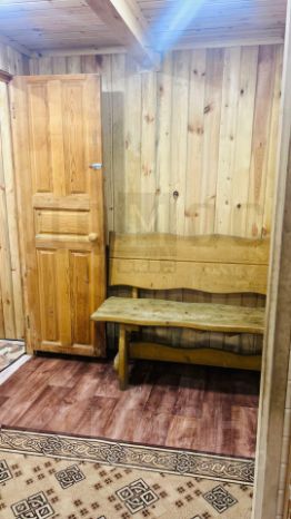 Лестница на второй этаж удобная,не крутая,из дерева. Внутренняя отделка дома- вагонка.