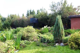 Ровный разработанный участок, плодоносящий сад (яблони, сливы, вишня, облепиха, ирга, малина, многолетние цветы и декоративные растения)