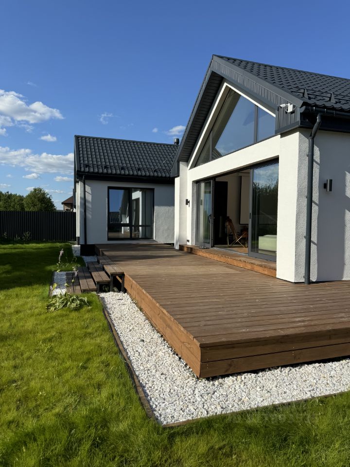 Площадь дома 148м2. Кухня гостиная, три спальни, два сан узла, две гардеробных , котельная.
