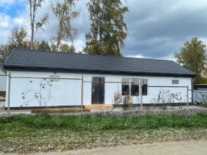 Продается дом 72 метров квадратных с двумя спальнями,с двумя сан.узлами, просторной гостиной с кухней, с теплой прихожей по каркасно-щитовой технологии.