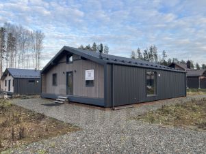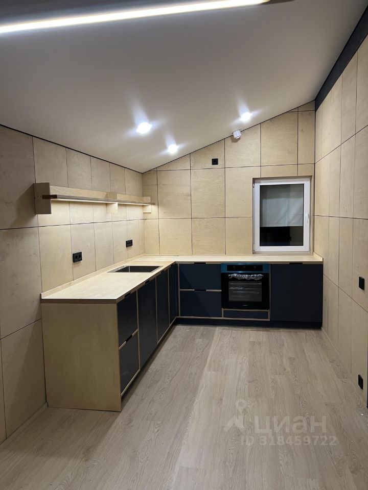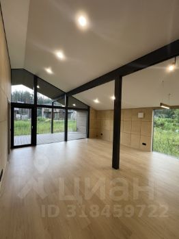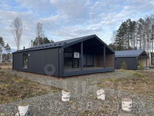 Отделка интерьера березовыми шпонированными панелями, покрытыми маслом OSMO. В доме предусмотрено электрическое конвекторное отопление с системой умный дом.