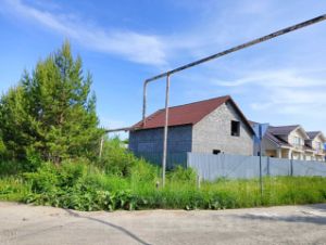 На участке построен дом ( коробка), рядом с участком проходит газовая ветка, электрический столб.