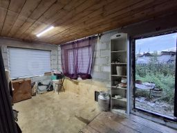 Состоит из прихожей (планировали кухню и санузел) 14 кв.м, гостиной 28 кв.м, спальни 14,2 кв.м. Отопление в доме центральное, скважина на участке 45 м, электричество 220, газ рядом с домом. Хорошая входная дверь.