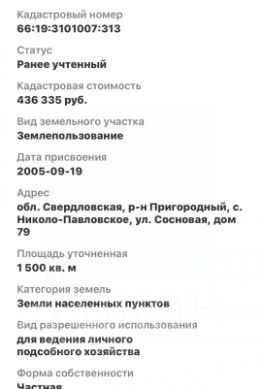 Продажа земельного участка по адресу: с. Николо Павловское, ул. Сосновая, 79