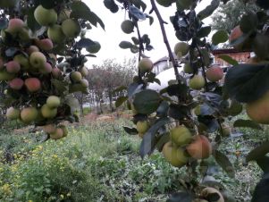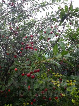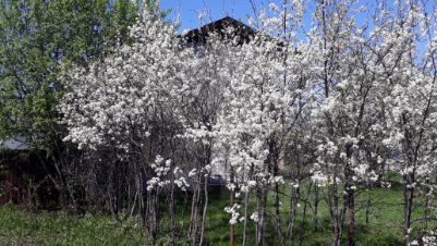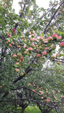 Растут яблони, вишня, смородина, есть многолетние цветы