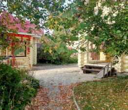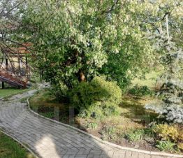 Для отдыха построена беседка из оц. бревна, полностью остеклена, есть летняя кухня, подведен водопровод, большая печь с мангалом и казаном. Большое газонное поле, с системой авт. полива, на котором расположен плодоносящий сад (яблони, груши, сливы, вишня, жимолость, смородина, крыжовник, малина). Растет дуб, под которым расположено патио для отдыха. По участку высажено много зимостойких декоративных лиственных и хвойных растений, роз. Для детей есть детская площадка, с домиком, горкой, песочницей, спортивным комплексом, гамак, тир. Есть площадка под летний бассейн. Два крытых машиноместа, два гаража для техники, зона с будкой для собаки, скрытое место у забора для хранения материалов. Из дома выход на большую террасу 30м2 и в сад.