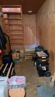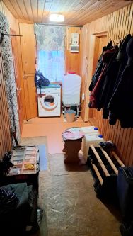 В доме возможно проживание круглый год. Общая площадь 56,1 кв.м., 2 этажа, 3 комнаты (объединённая зона кухни и гостиной).