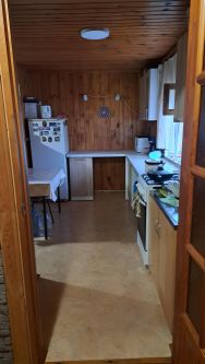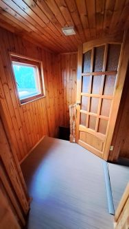 Внутренняя отделка: пол 1этаж линолеум, 2 этаж ламинат; стены и потолки вагонка покрытая лаком; окна деревянные; деревянные межкомнатные двери; входная дверь деревянная с внутренним утеплением.