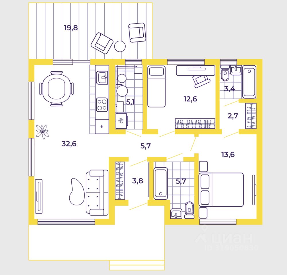 Просторная кухня - гостиная 112,9 кв.м. с выходом на террасу.