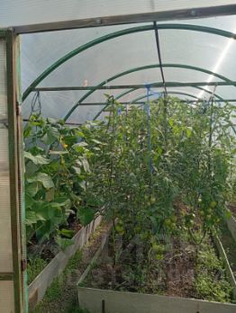 На участке много насаждений: яблони, сладкая слива, вишня, крыжовник двух видов, жимолость, чёрная и красная смородина, ирга, малина.
