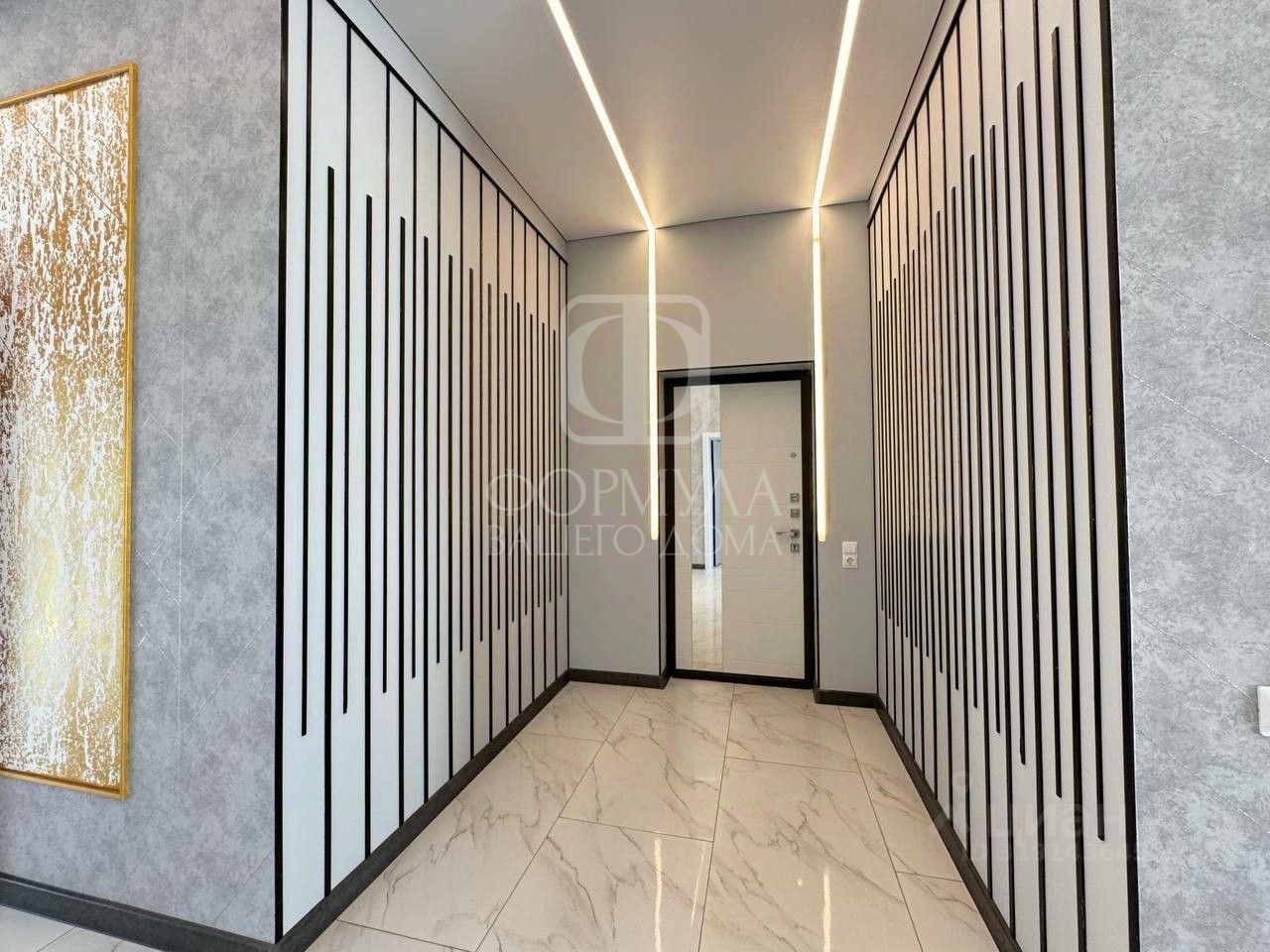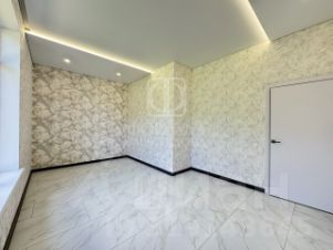 На полу керамогранит, на стенах обои, межкомнатные двери, натяжные потолки со светильниками, в санузлах плитка, в котельной котел, водонагреватель.