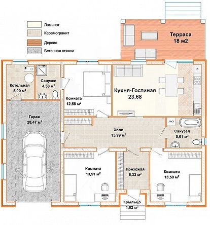 Вы сможете расслабиться и наслаждаться свежим воздухом, прекрасными видами на террасе с крышей. Внутри дома ждет вас просторная и удобная гостиная комната