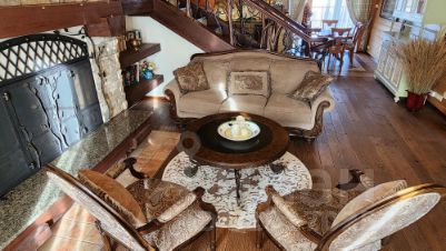 Дом построен в 2018 году из газоблока, снаружи отделан декоративной штукатуркой и натуральным камнем. Вода из двух скважин с современными системами очистки, отопление твёрдотопливным или электрическим котлом, электричество 380 В. Внутри — дизайнерская отделка из кедровой вагонки и паркетной доски, итальянская плитка в санузлах, кухня с техникой премиум-класса (MARCHETTI, SMEG) — всё остаётся новому владельцу! Просторный цокольный этаж с гостевой спальней и санузлом, уютная кухня-гостиная с живым камином и выходом на террасу, две большие спальни на втором этаже — комфорт для всей семьи.
