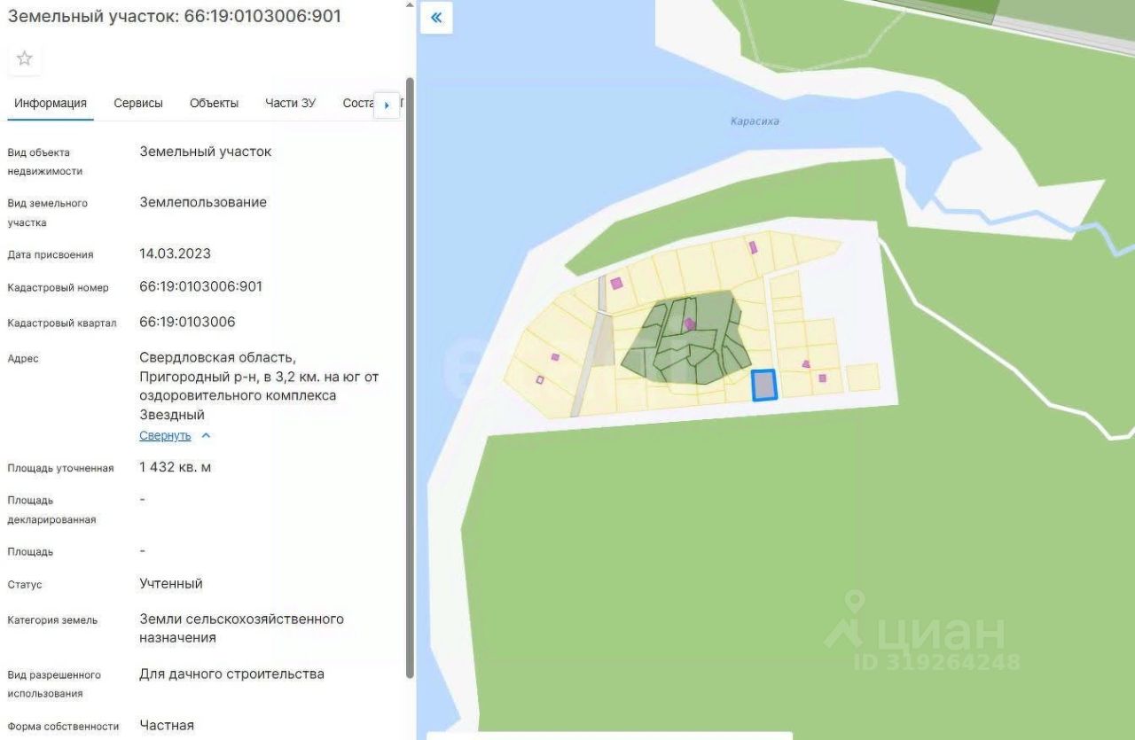 Земельный участок площадью 14,32 сотки расположен в дачном кооперативе "Карасиха" Горноуральского муниципального округа, в 23 км от центра Нижнего Тагила. Участок находится в экологически чистой зоне, вблизи живописного Леневского водохранилища — до воды всего 330 метров. Территория кооператива огорожена и оборудована системой видеонаблюдения, что обеспечивает безопасность и спокойствие.